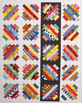 I'm loving that black and white scribbly fabric (above). Can't find the selvage for details. I'll update this post when I find it. Lots of good fabric-arranging fun in the making of this quilt!