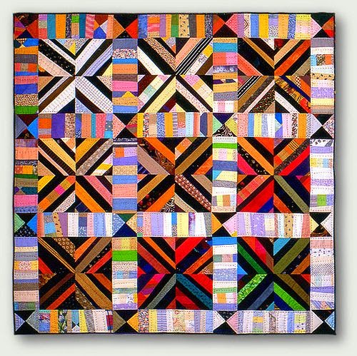 I just finished this quilt for them today. It measures 72" square. A classic string quilt design, it has lots of hidden treasures such as peanuts, goldfish, a sock monkey, an owl, and lots more. Over the years maybe family members will have fun searching for little surprises in this quilt top.