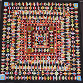 "Gypsy Billings at Midnight" quilt by Roslyn Littlejohn, inspired by the 1805 Mrs. Billings Coverlet. Featured by Karen Styles' blog. Be sure to visit her blog to see more quilts inspired by the one by Mrs. Billings. Wow!
